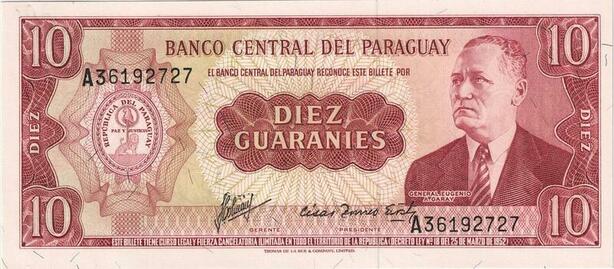 Q5950 Banknote Paraguay 10 Guaranies General Eugenio A Garay1963 UNC > M offer
