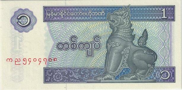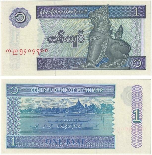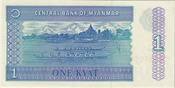 Q5955 Banknote Myanmar 1 Kyat Chinze Pirogues 1996 UNC -> Make offer