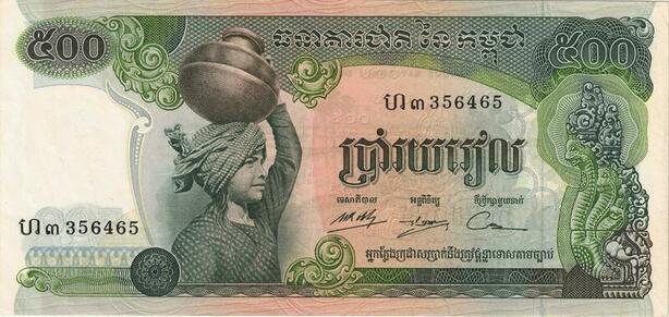 Q5957 Banknote Cambodia 500 Riels 1974 UNC -> Make offer
