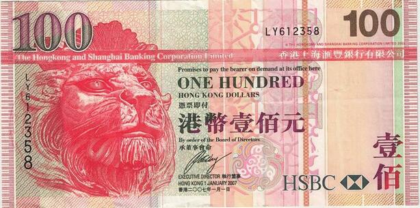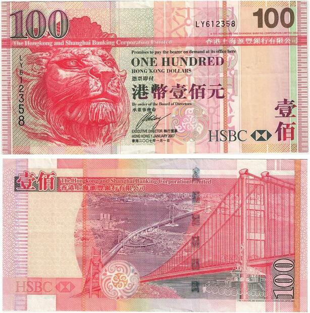 Q5965 Banknote Honkong 100 Dollars Lion 2007 UNC -> Make offer