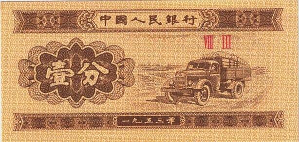Q5969 Banknote China 1 Fen Truck 1953 UNC -> Make offer