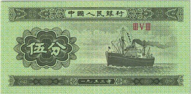 Q5970 Banknote China 5 Fen Cargo 1953 UNC -> Make offer