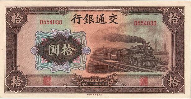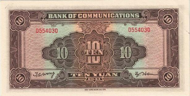 Q5978 Banknote China 10 Yuan Bank of Communications 1941 UNC -> Make offer