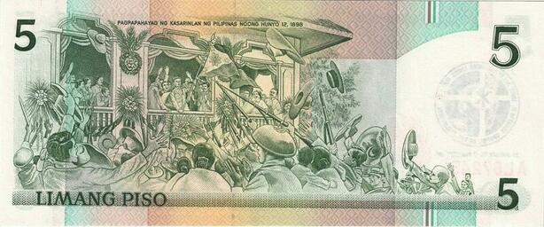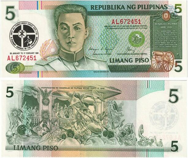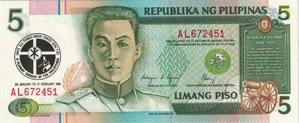 Q5985 Banknote Philippines5 Piso Emilio Aguinaldo 1985-1994 UNC -> Make offer