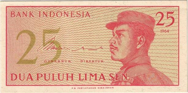 Q5992 Banknote Indonesia 25 Sen1964 UNC -> Make offer
