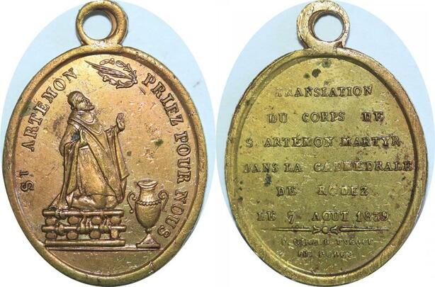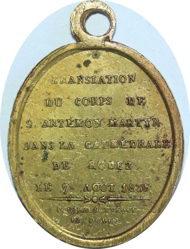 Q6486 Médaille Eveque St Artemon Rodez Corps Artémon 7 août 1839 SUP