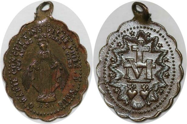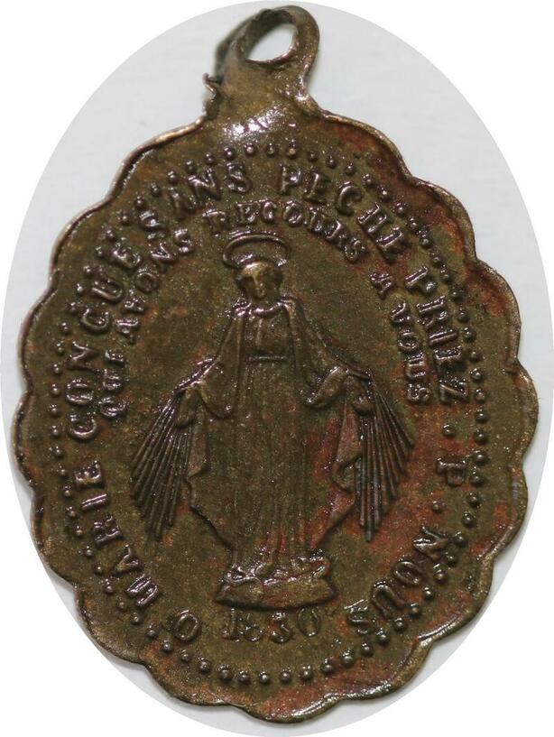 Q6593 Médaille O Marie Priez pour Nous 1830 2 coeurs SUP -> Make Offer