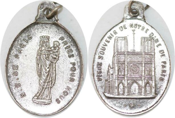 Q6610 Médaille Notre Dame de Paris Cathedrale Vierge Marie Silvered