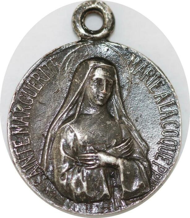 Q6612 Médaille St Marguerite Jesus heart coeur Silvered SUP