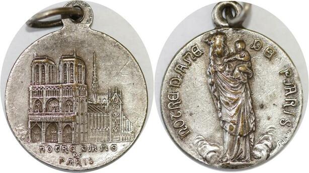 Q6655 Médaille Notre Dame de Paris Cathedrale Marie Jesus Silver