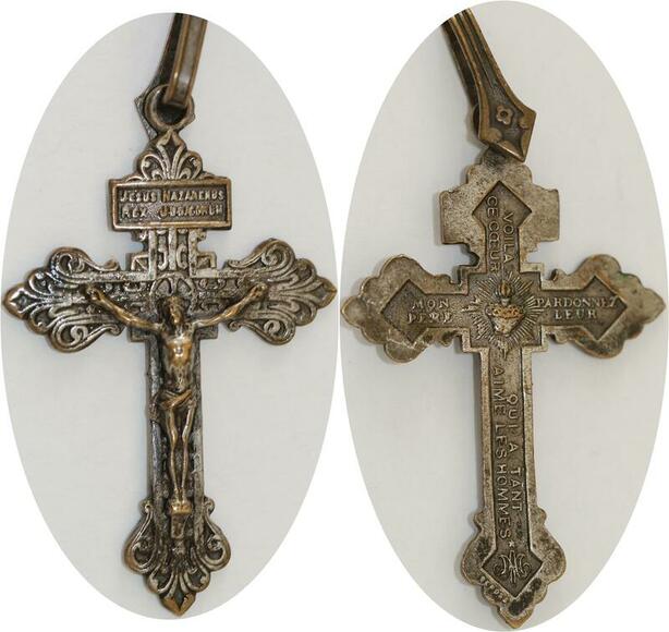 Q6707 Médaille Croix Jesus Nazarenus Rex Judaeorum 19th Century