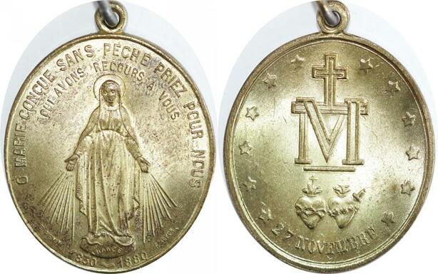 Q6730 Médaille O Marie Priez pour Nous Vierge Marie coeur 1830 1880 SPL