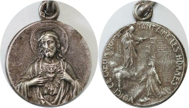 Q6802 Médaille Coeur Jesus Voila ce qui a tant aimé les hommes Silvered