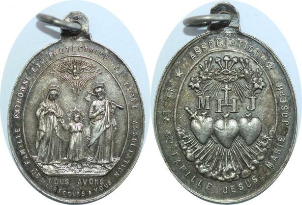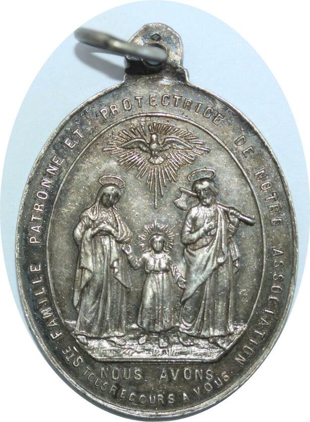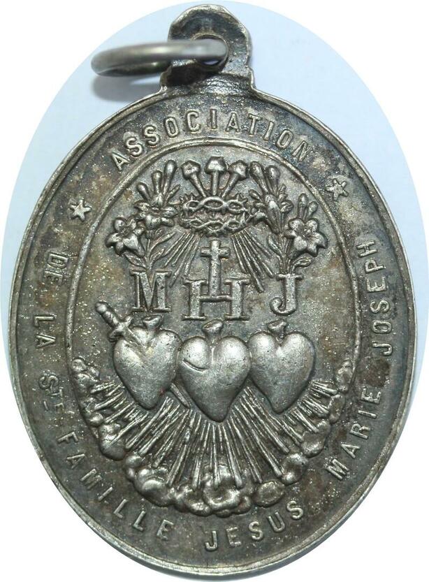 Q7018 Médaille Association St Famille Jesus Marie Joseph 3 coeurs Silvered