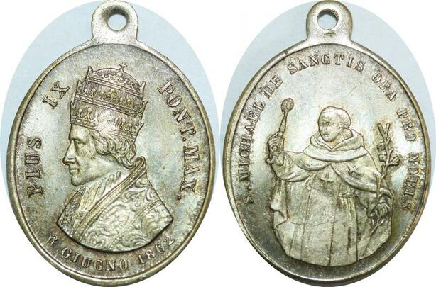 Q7880 Medaglia Vatican Papal States Pius IX St Michael 1862 UNC > Offer