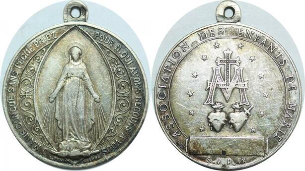 Q7885 Médaille France O Marie Vierge Marie 1830 coeurs Silver > Make Offer