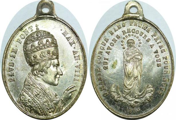 Q7886 Medaglia Vatican Papal States Pius IX Virgin Mary 1854 UNC > Offer