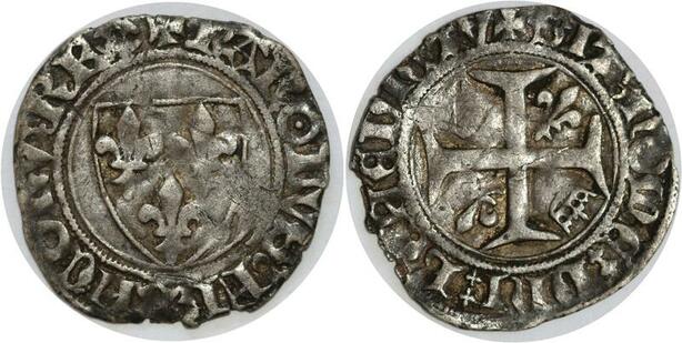 Q7955 Rare Duc Bourgogne Blanc Guénar Charles VI 1417 Troyes Variété O