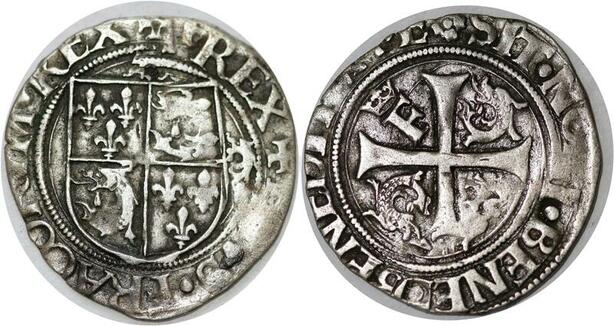 Q7966 Rare Grand blanc dauphiné François Ier 1515 1547 Grenoble Fauté REX Argent