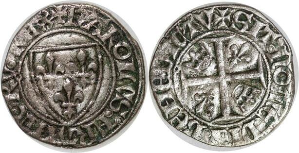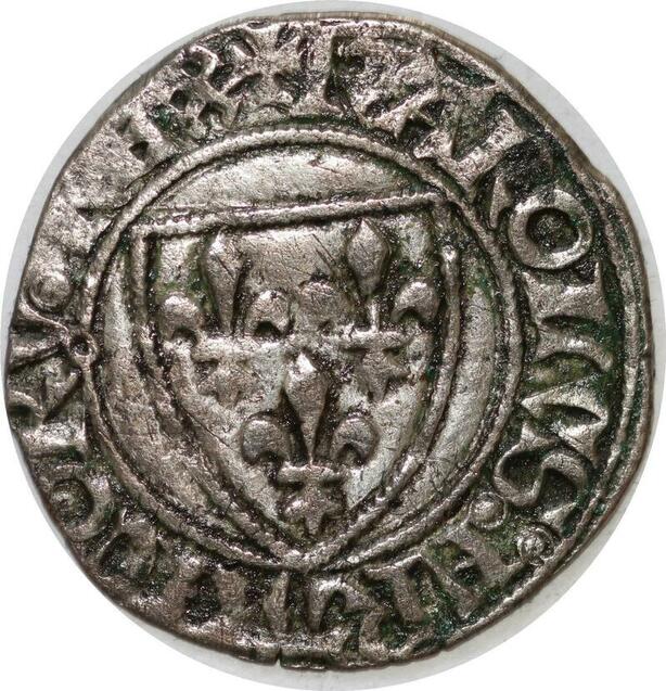 Q7979 Rare Blanc Guénar Charles VI 380-1422 Rouen 15è point Argent > Offer