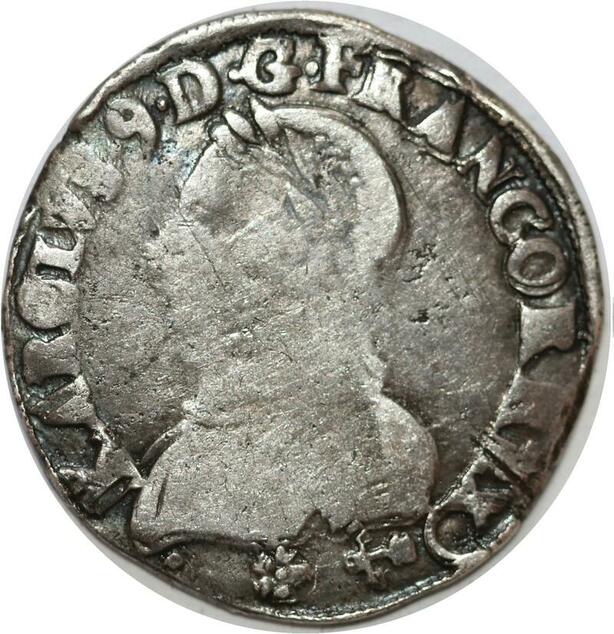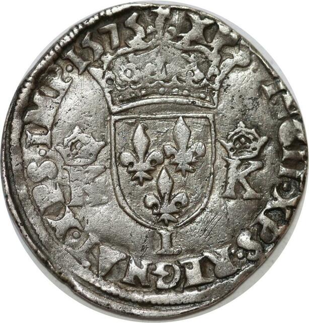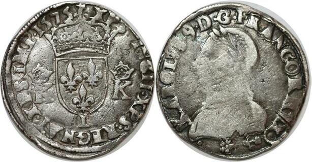 Q7981 Rare Teston Henri III au nom Charles IX 4e type 1575 Bayonne Argent