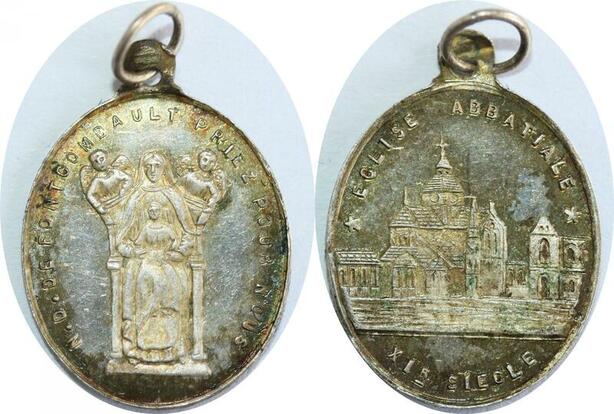 Q8275 Medaille Notre Dame de Fontgombault Eglise Abbatiale Vierge Marie Silvered SPL