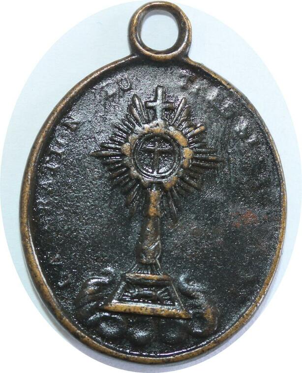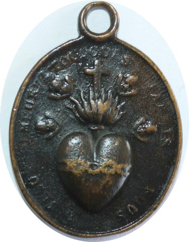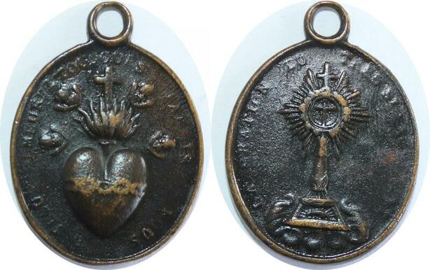 Q8290 Médaille L'adoration du très St Sacre Coeur Jesus 18-19th Siècle