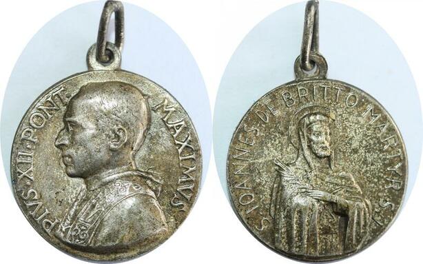Q8292 Medal Vatican Papal States Pope Pius XII St Jean de Britto Silvered -> Offre
