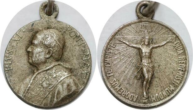 Q8322 Medal Vatican Papal States Pope Pius XI Jesus Christ Cross Silvered