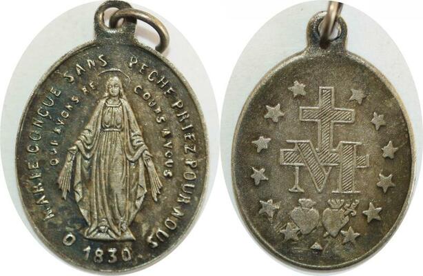 Q8334 Medaille Vierge O Marie Sans Péché Priez Pour Nous 1830 Argenté