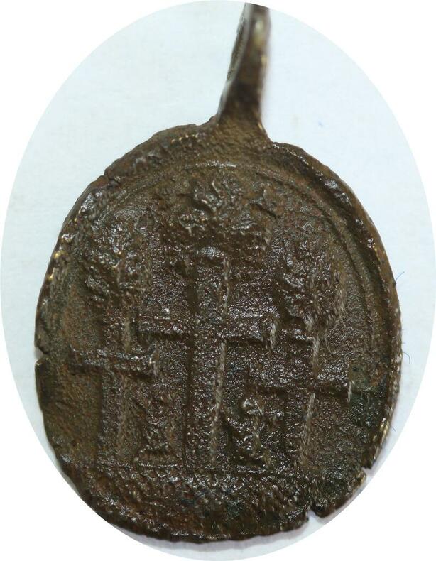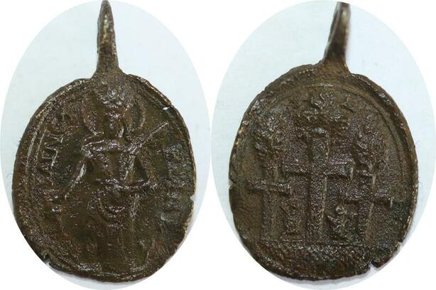 Q8338 Medal Papal States Vatican Sancta Reine 3 ormeaux 17th Century