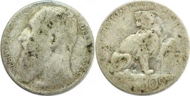 Q8339 Belgique 50 Centimes Lion 1901 Argent Silver