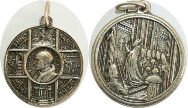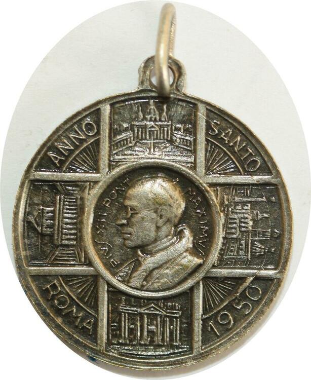 Q8347 Medal Papal States Vatican Pope Pius XII Anno Sancto 1950 Silver
