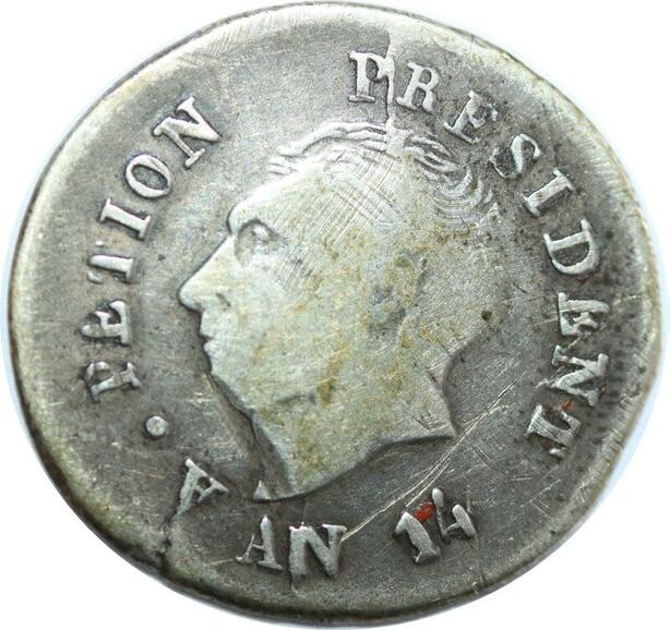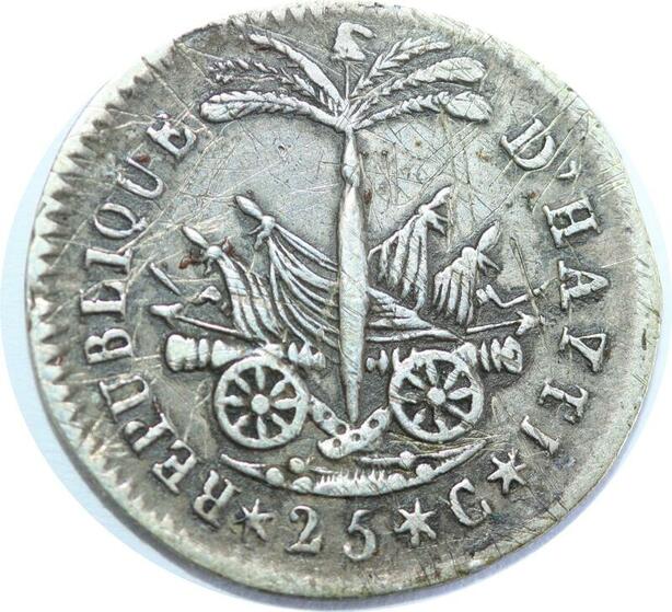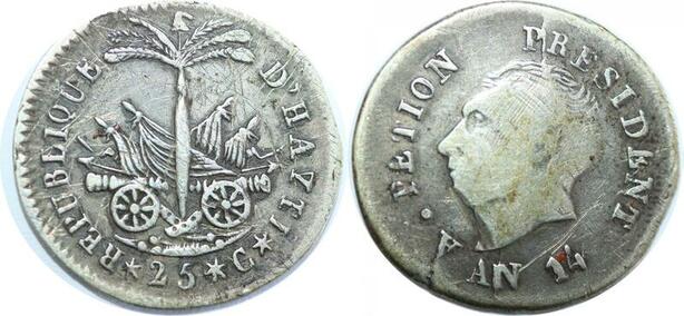 Q8598 Haiti 25 Centimes President Alexandre Pétion An 14 1817/8 Silver