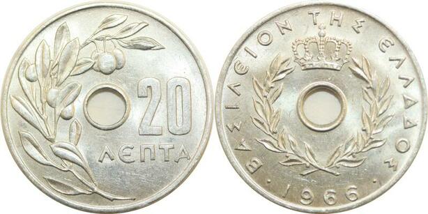 Q8652 Griechenland Greece 20 Lepta Konstantin II 1966 UNC ->Make offer