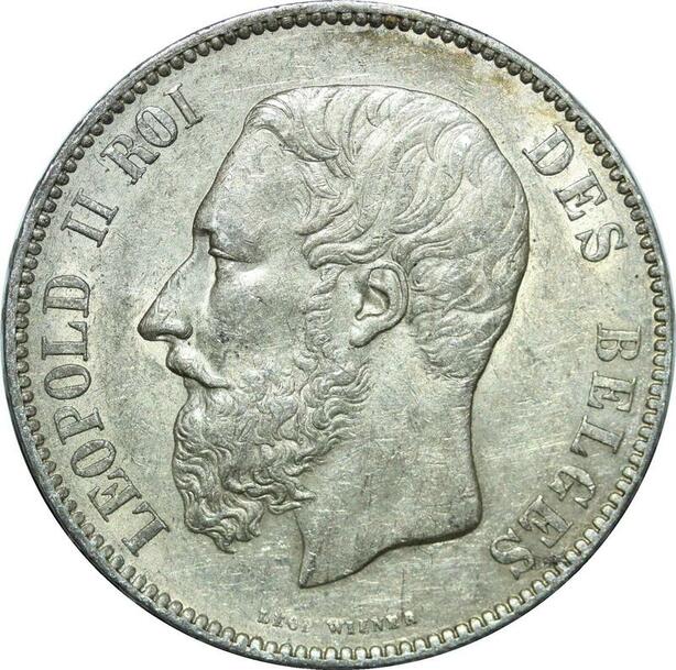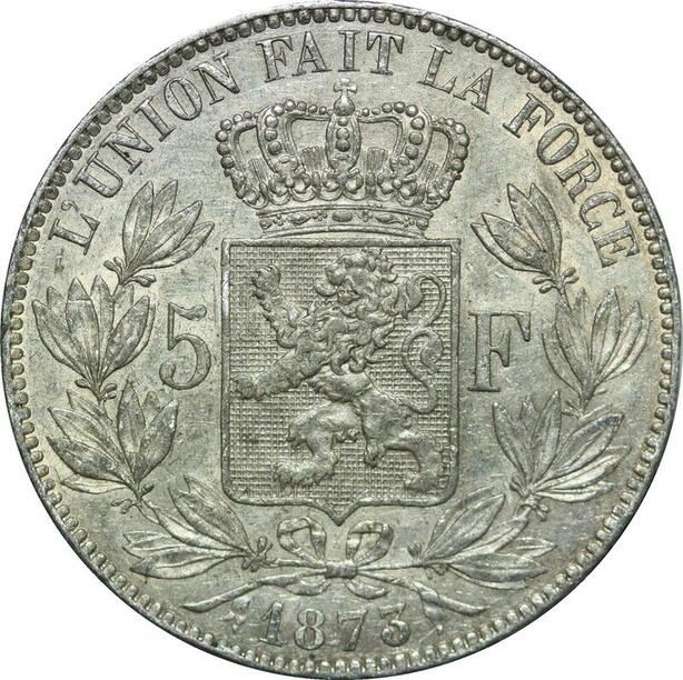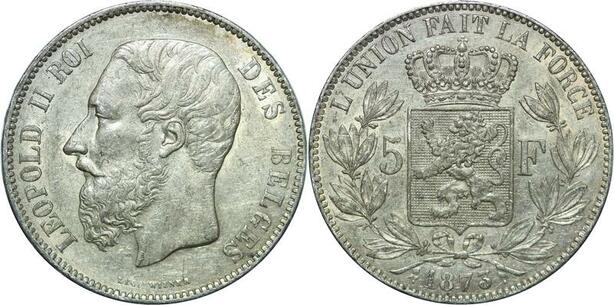 R1045 Belgium 5 Francs Leopold II Roi des Belges 1873 Argent -> Make offer