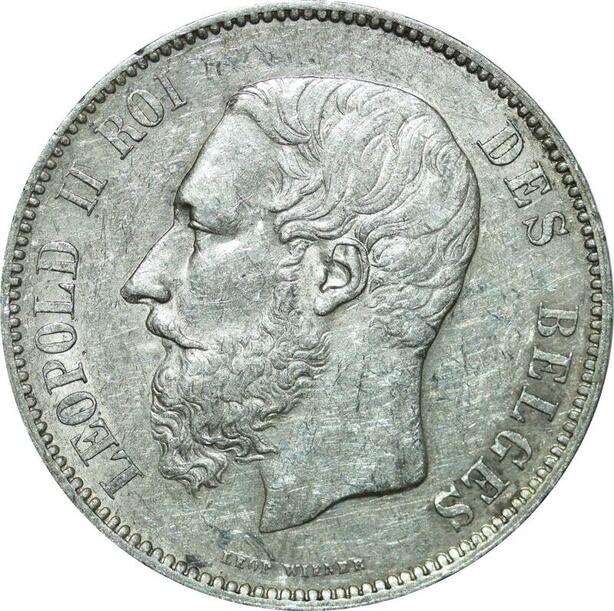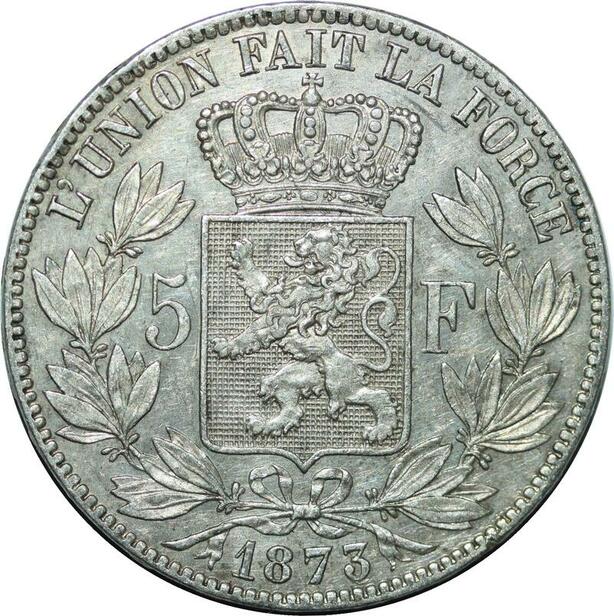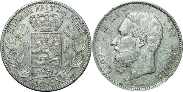 R1054 Belgium 5 Francs Leopold II Roi des Belges 1873 Argent -> Make offer