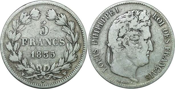 R1073 France 5 Francs Louis Philippe I 1835 W Lille Argent -> Make offer