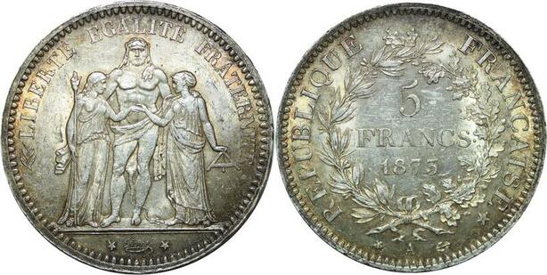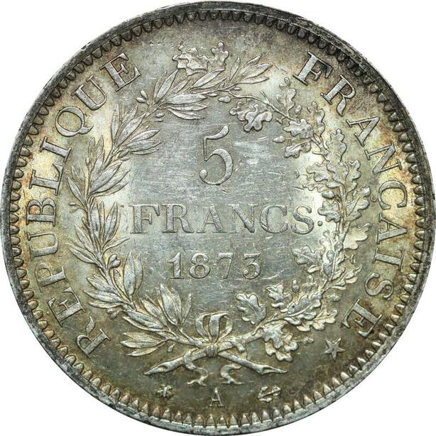 R1080 France 5 Francs Hercule 1873 A Paris Argent Silver AU UNC -> Make offer