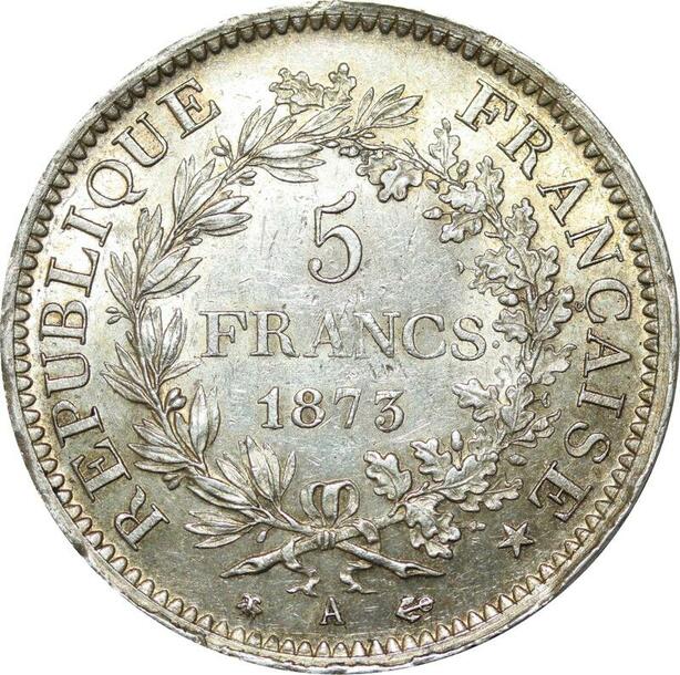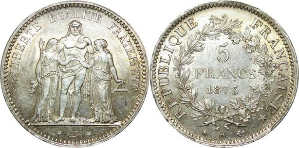 R1102 France 5 Francs Hercule 1873 A Paris Argent Silver UNC -> Make offer