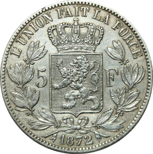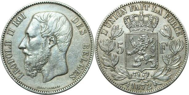 R1105 Belgique 5 Francs Leopold II 1872 Silver -> Make offer