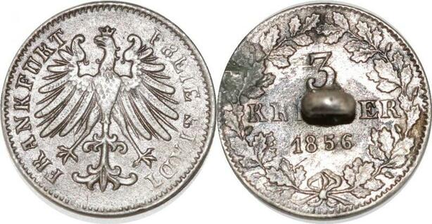 R1114 German States Frankfurt am Main Freie Stadt 3 Kreuzer 1856 Silver ->Offer