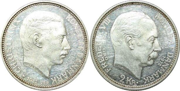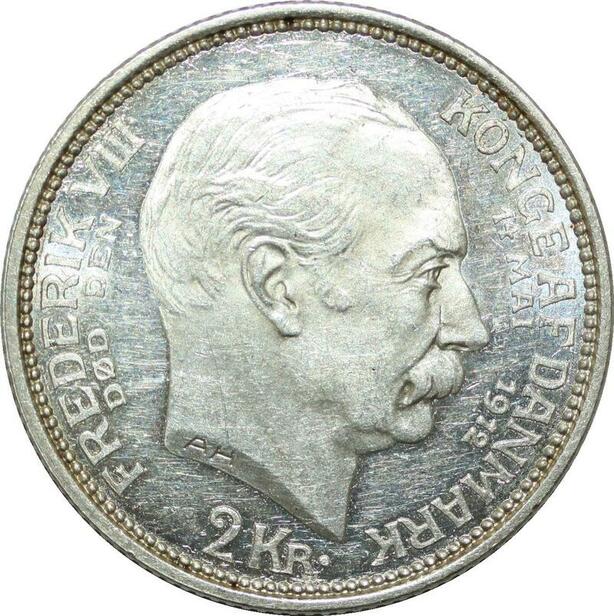 R1128 Denmark 2 Kroner Frederik VIII Christian X 1912 VBG Silver AU -> Make offer