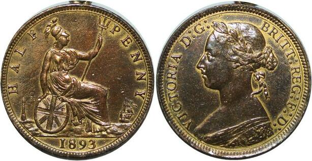 R1129 Great Britain 1/2 Penny Queen Victoria 1893 AU -> Make offer
