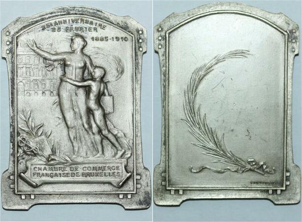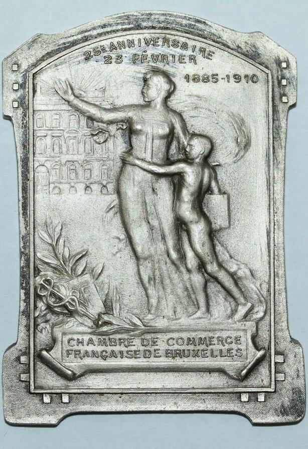 R1188 Rare Belgique Plaque Chambre Commerce Bruxelles 1910 Argent SUP >Offer