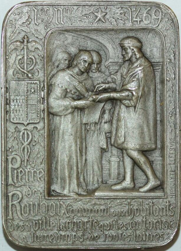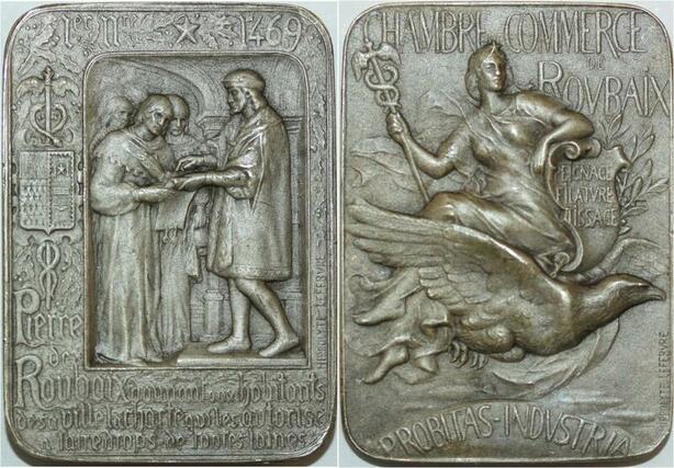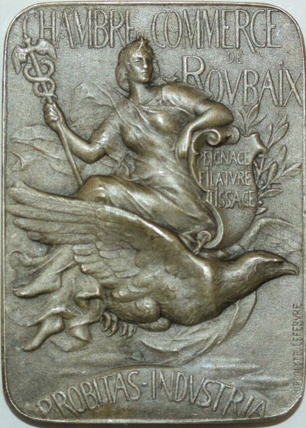 R1239 Rare Plaque Pierre de Roubaix 1469 Commerce Hypolitte Lefevre Argent SUP