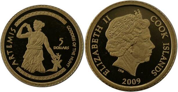 R1264 Cook Islands 5 Dollars Artemis 2009 Or Gold BE PF -> Make offer