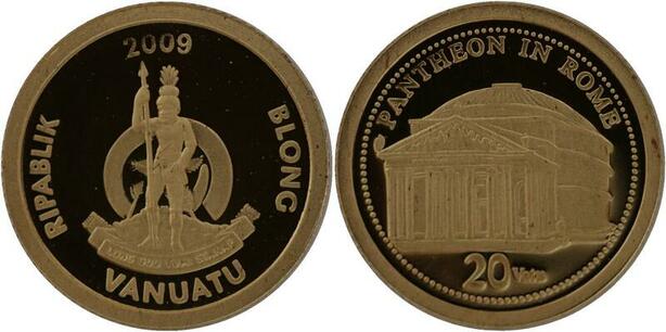 R1276 Vanuatu 20 Vatu Pantheon Roma 2009 Or Gold BE PF -> Make offer