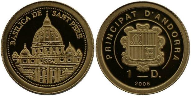 R1314 Andorra 1 Diner Basilica Sant Pere 2008 Or Gold BE PF -> Make offer