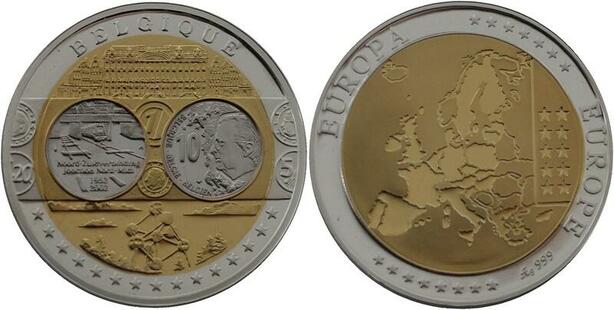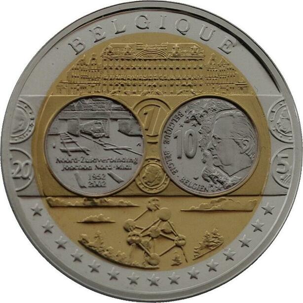 R1333 Médal Belgique 10 Euros Ligne Nord Sud 1952 2002 Silver 999% PF Proof BE